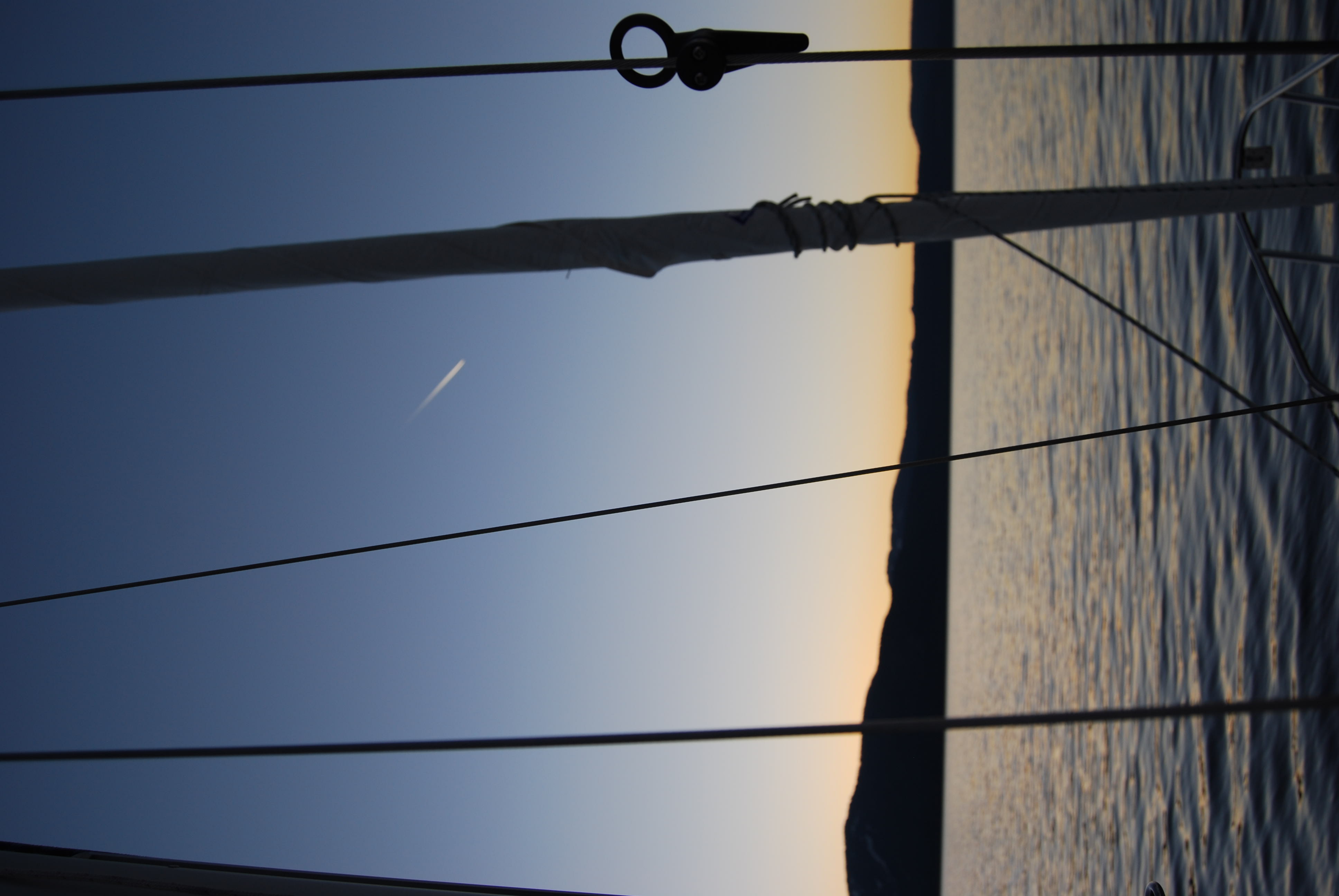 As the sun set and a cool pink light settled over the surrounding skies, we fired up the Perkins diesel and began our long, slow motor back to Tahoe City Marina. Overhead, a handful of jetliners cast long contrails to and fro in the western sky, and slowly the lights of lakeshore houses began to appear. Overhead, the firmament shone like diamonds in a midnight-blue sky. Eric had the helm, and with prompts from our hand-held GPS, was able to guide Splendido right into the channel. As we were offloading our gear at the gas dock, an older couple on a Catalina 22 ghosted by us, gently motoring out for a look at the sky full of stars.