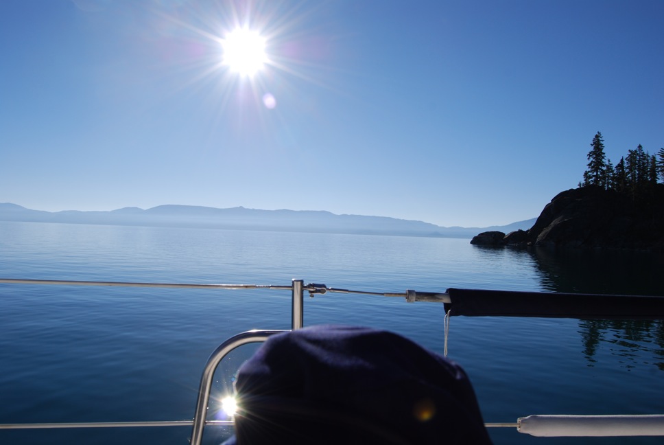 At 4:39 a.m., I awoke, crawled out of bed, and looked out the hatch. Splendido was exactly where she should be, Tahoe was millpond-smooth, and an amazing pre-dawn glow was setting the mountain tops ablaze with a soft rosy light. Finally confident that we were not going anywhere (and after all, shipwreck and disaster are much easier to deal with by the light of day), I fell soundly back to sleep.