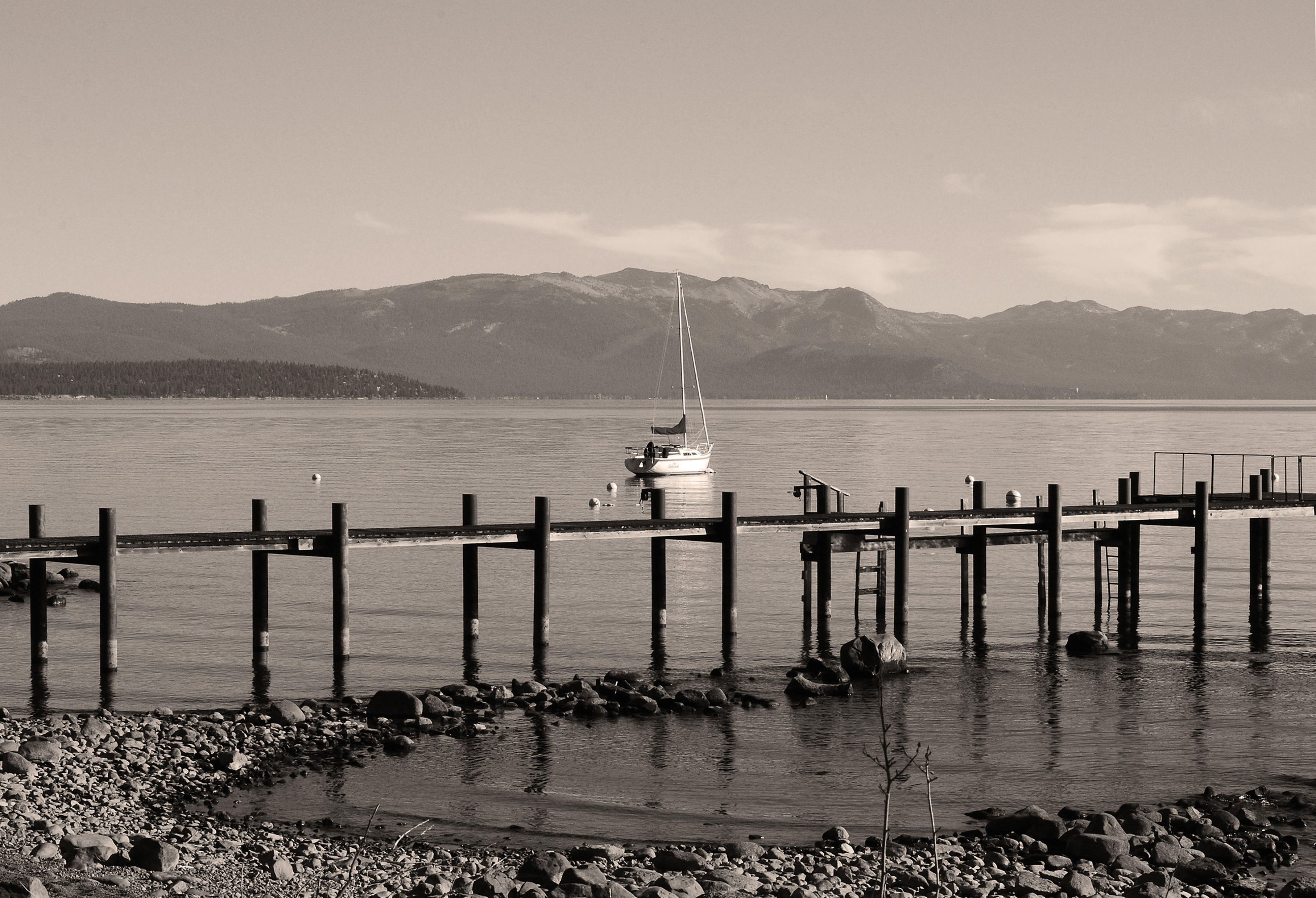 The next day, I drove up once again to take the boat down to Obexer’s for offloading. The logistics of the offloading were a bit like an athletic event: I had to drive the van up, drop it off at Obexer’s, pull out my bicycle and ride it two miles north to where Splendido was moored, row out with the bicycle in the dinghy, unfasten the mooring line from the buoy itself, tie off the dinghy to the back of Splendido, and then motor down to Obexer’s. It was all a bit of sprint, because I had to get everything done, be back in Reno by 4:30 p.m. for a short nap and then go to my statistics class in the MBA program from 7 p.m. to 9:45 p.m. Fortunately, when I arrived at Obexer’s, they let me pull into a vacant slip, where I proceeded to empty the boat of every last item, from cushions to glassware and sunscreen, and transfer it all into one of Debbie’s catering vans. Luckily, I had borrowed the big Safari van, and filled every inch of it. That made me think that the boat could probably add a knot or two to its top speed if only it wasn’t so laden with creature comforts. But, after thinking about it for a few minutes, I decided that it was all worth it if it kept Debbie happy and sailing with me.