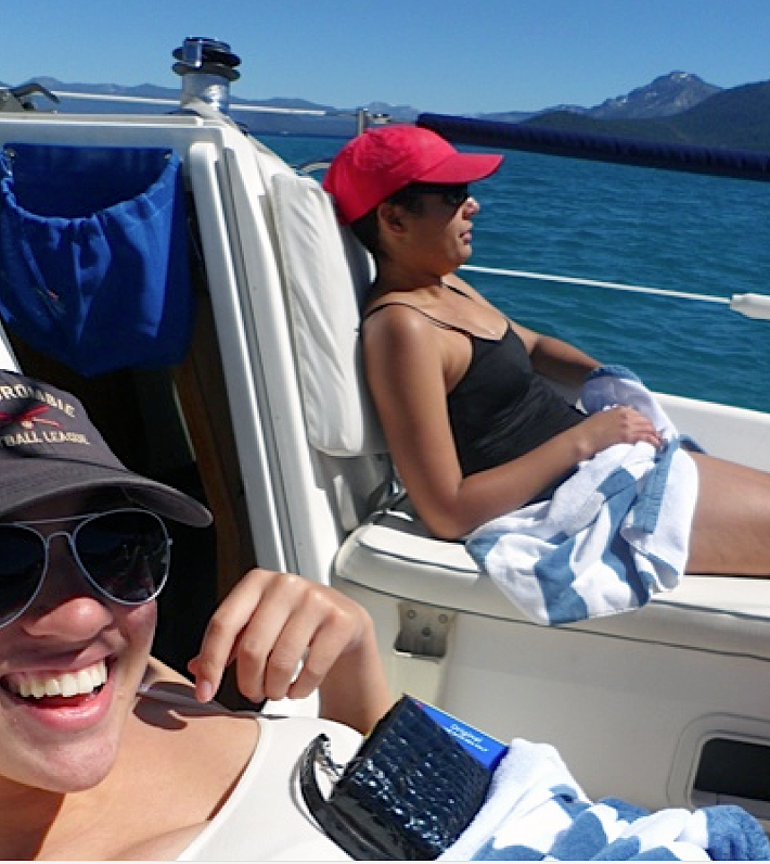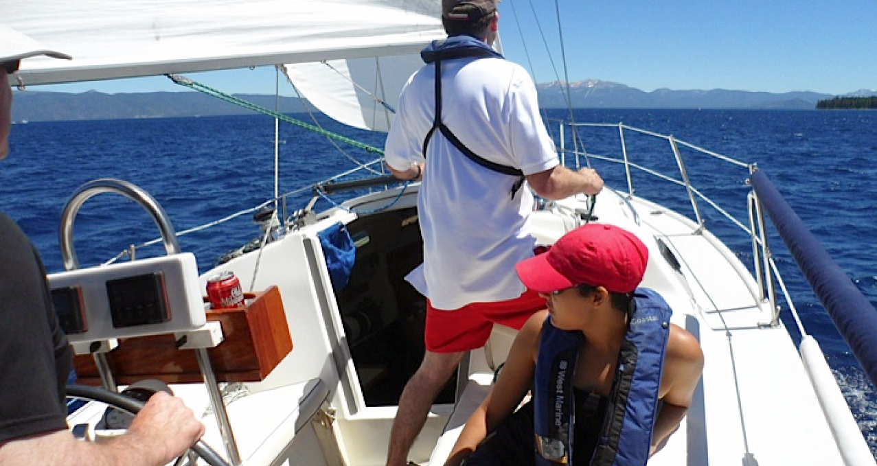 Once we were underway, Lauren and Dominique went below decks to get out of the wind, as their damp suits were a bit chilly, in spite of the 78-degree air temperature. As Michael and I sailed along at a brisk 6.2 knots in freshening breezes, we noticed that the girls had stopped talking. I took a look below to see if everything was OK, and found the girls slumbering soundly as Splendido heeled gently, charging along under full main and the 150 genoa. All in all, it was a thrill to share beautiful Lake Tahoe with two new friends and one old one, and it was a day filled with laughter and memories I’ll cherish for a long, long time.