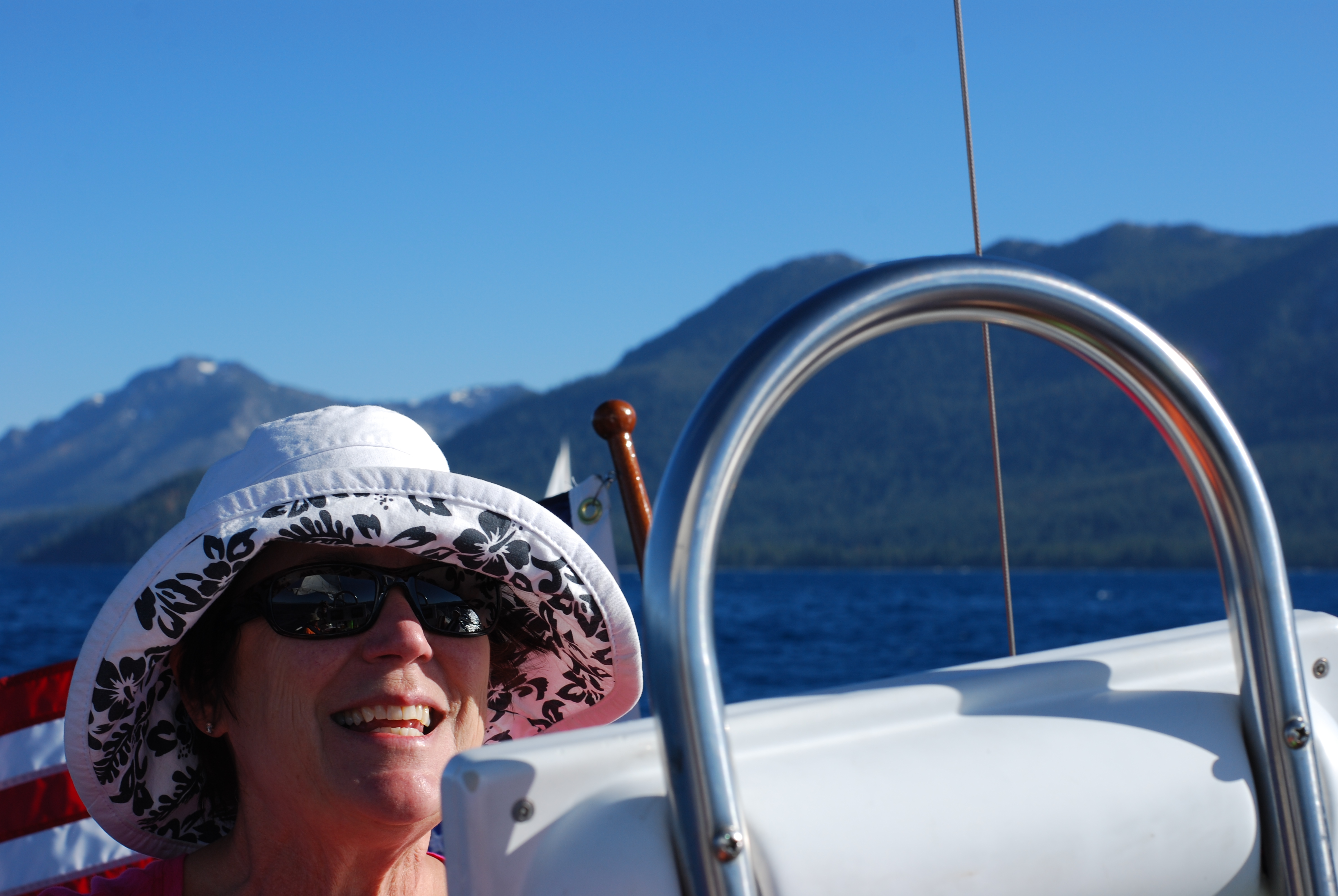 Patty Bell enjoying balmy breezes aboard Splendido at Lake Tahoe, July 16, 2016.