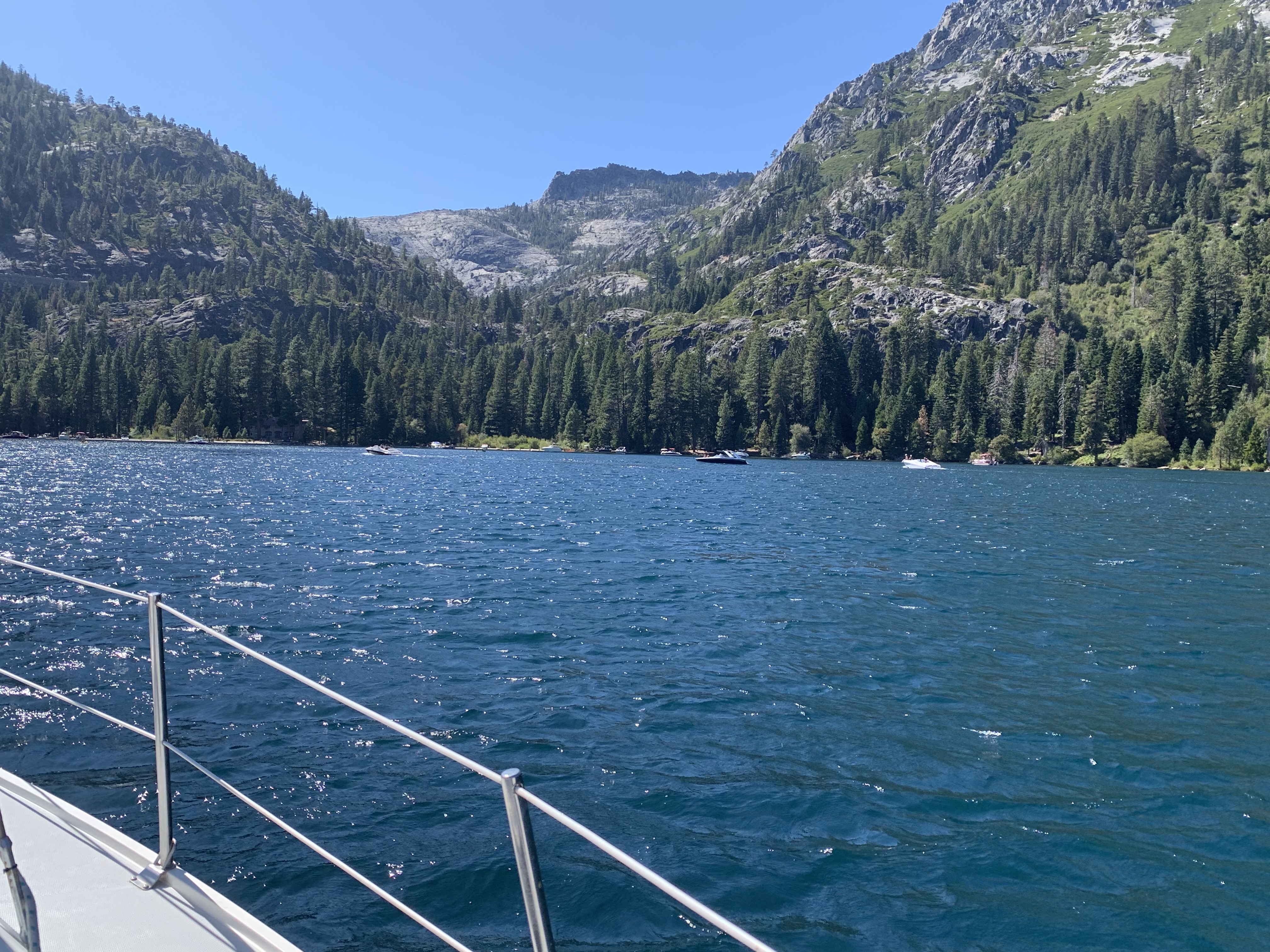 When we got to the entrance of Emerald Bay, it seemed like every boater left on the lake had had the same idea. These photos don’t show it so much, but there were dozens of boats hanging around Fannette Island, anchors down, girls sunning themselves on the backs of speedboats, guys trolling around, admiring the scenery.