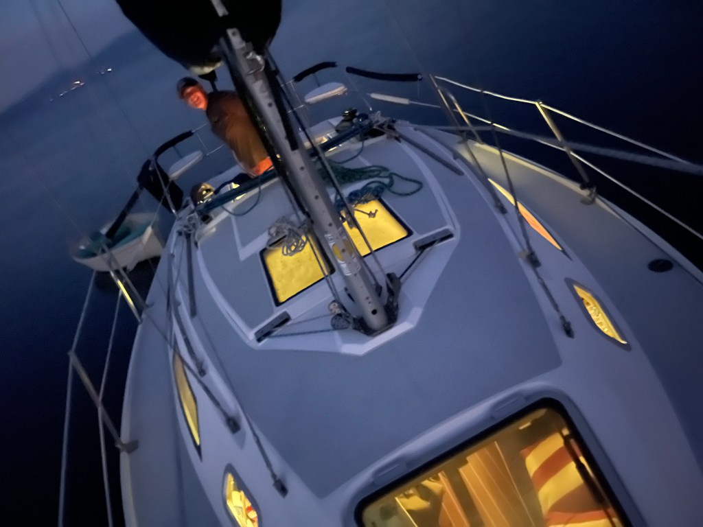 After dinner, we made it back to Splendido and decided to sleep on the lazarettes in the open air—something I had rarely done before. The view was spectacular as the sky darkened and the Milky Way appeared.