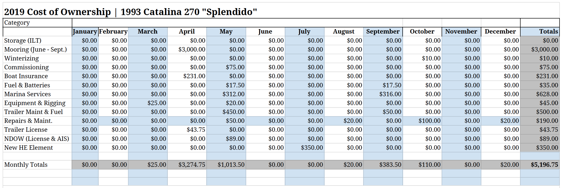 Let me know how your sailing season runs — and if there’s something wonky-looking about my expenses, let me know.