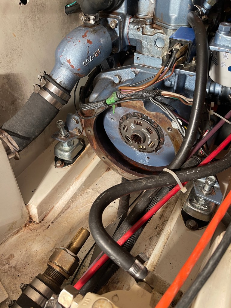 While our good old boat only has about 700 hours on her 18 hp diesel, one day, I heard a grinding noise down below and discovered that the crankshaft was turning while the engine was turned off and in neutral, which was a real head-scratcher for me. Ancil theorized that the clutch plates had warped over the years and were causing the shaft to turn, which is not optimal. At the end of the season, we removed the drive shaft, pulled the transmission out, got it cleaned up and now plan to install a service kit to get things working properly again. I’m also thinking about replacing the worn engine mounts, which is kind of a big deal, but that should reduce engine noise and vibration as well. I’ve also got to drop the rudder and mount a new rudder bushing which I accidentally discovered while diving the hull in August. What do we live for, hey? 🙂