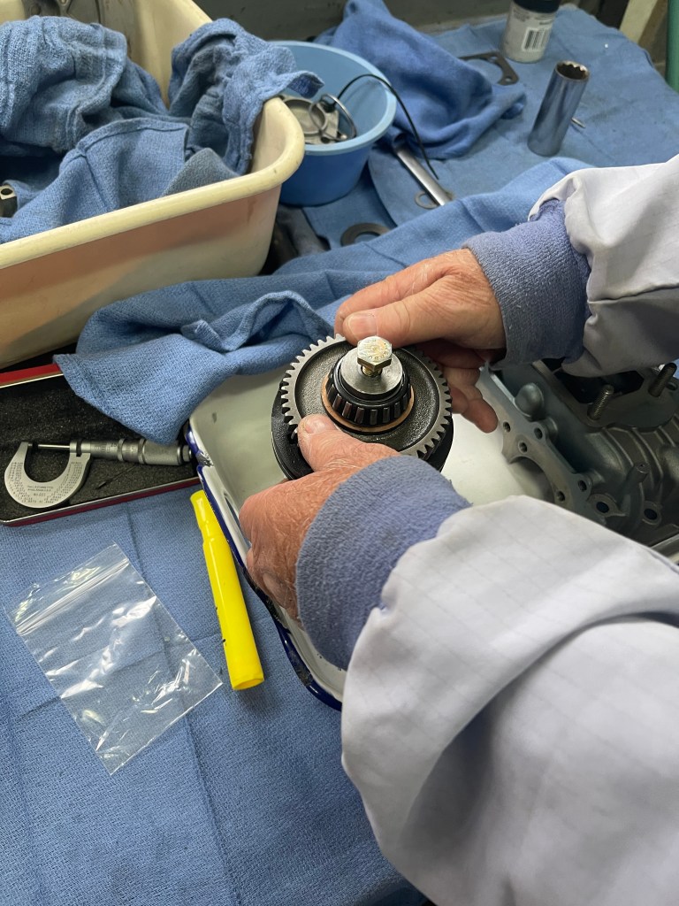 1) Disassembled, installed a complete rebuild service kit, and reassembled the Hurth transmission