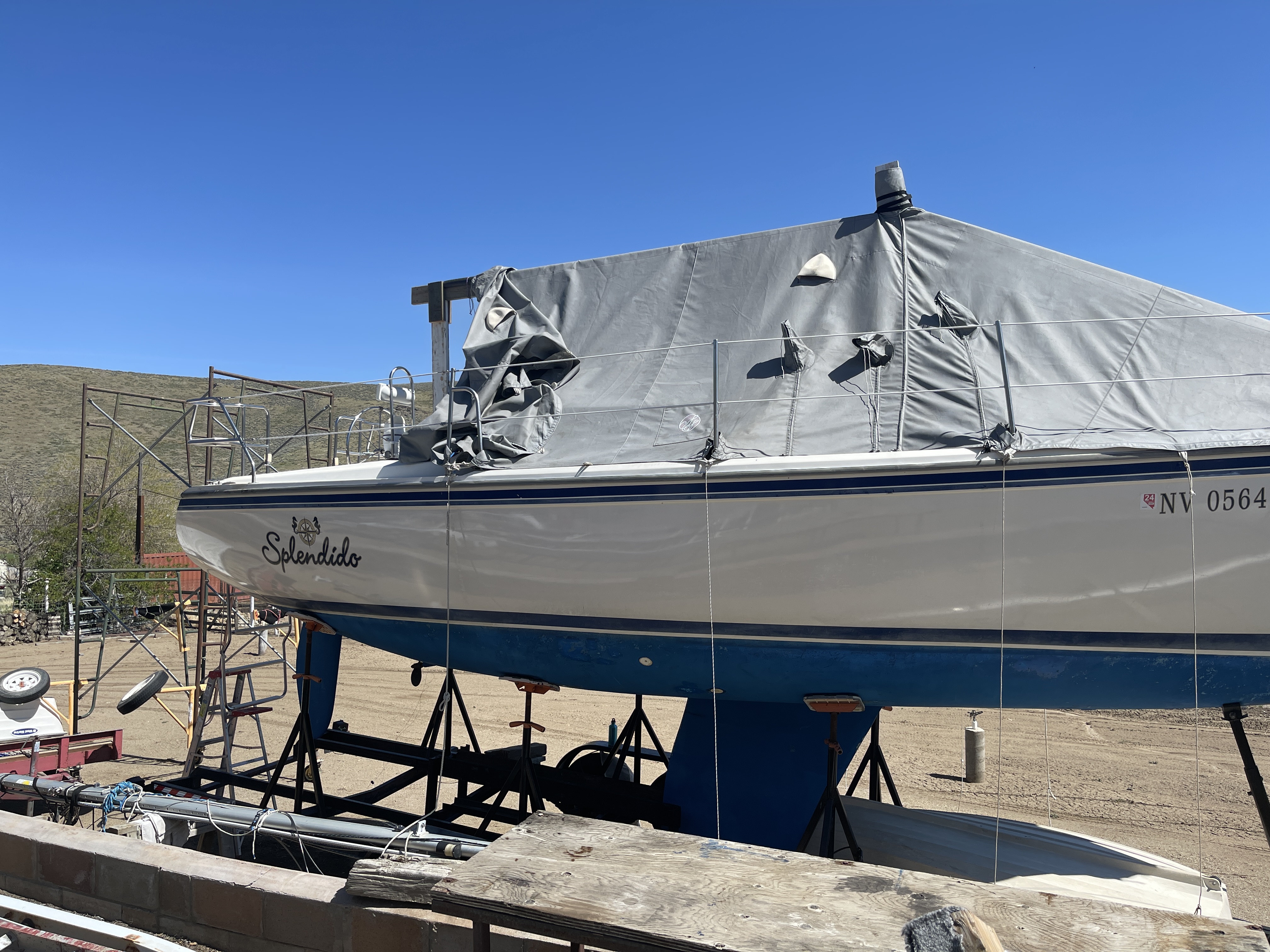 Alas, the season is so short at Tahoe, and before I knew it, it was time to bring Splendido down to Reno and put her away for the winter. I built a proper frame for her new-to-me winter cover, so I’m really grateful to be able work on her out of the weather this winter (and staying pretty warm when the sun’s out) while she’s on the hard. Next season will be here before we know it. Until then…