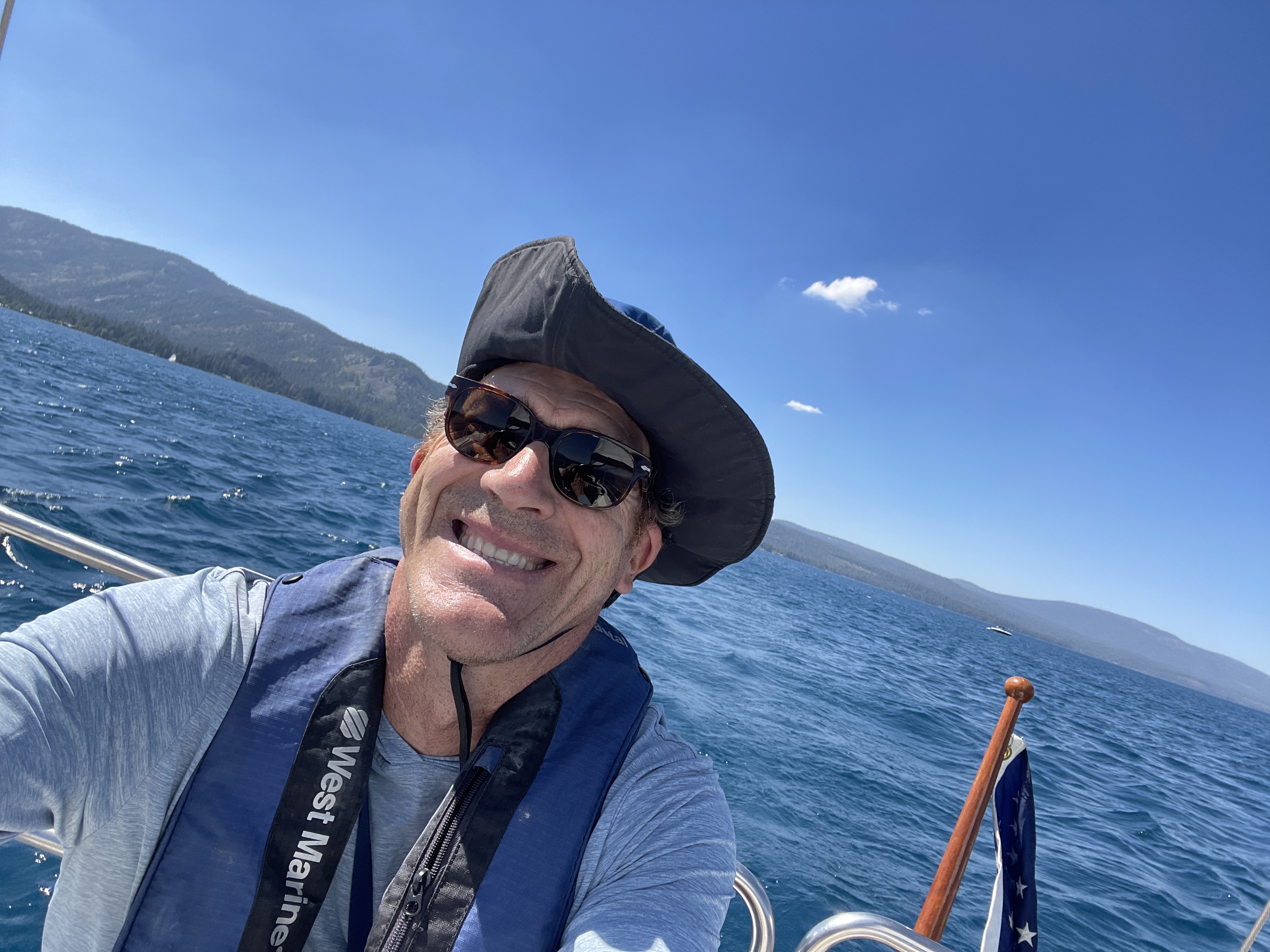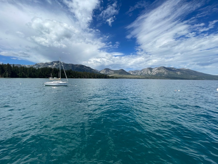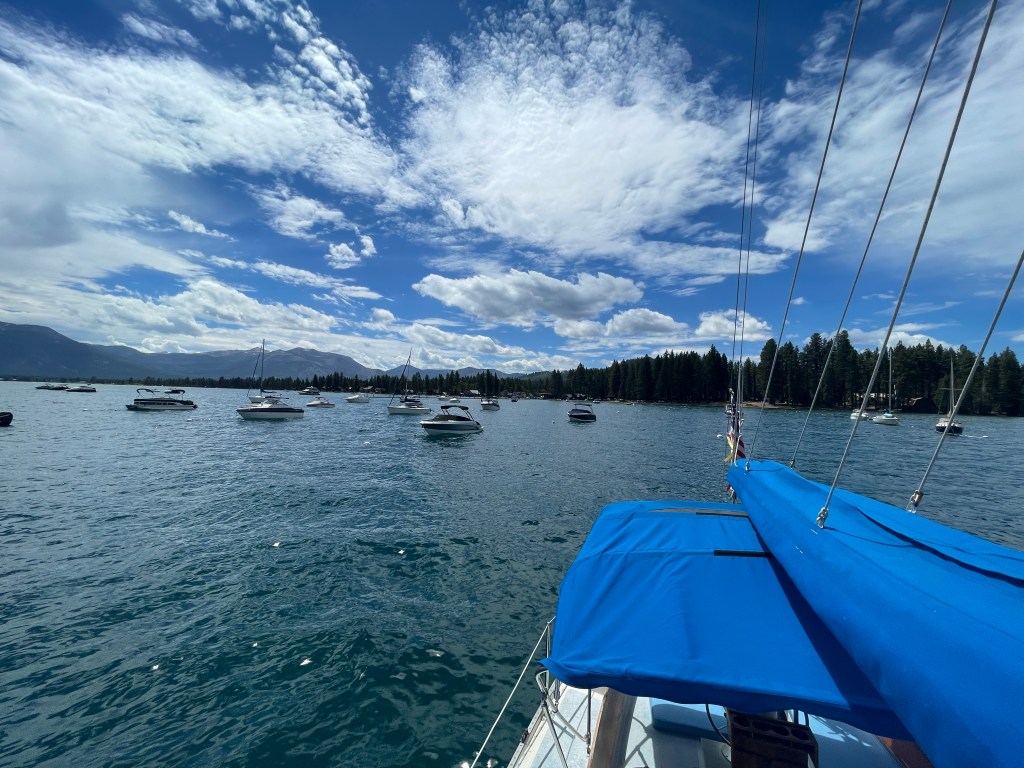Two days before, I had bade farewell to our lovely mooring at Hurricane Bay and motored down the 2-1/2 miles to Obexer’s, as they gave me permission to take an empty slip in preparation for our haul-out. On the way down, winds were 12 knots out of the east with that long fetch from Cave Rock on the east shore all the way to McKinney Bay on the west, so it was quite the rock ‘n’ rolling ride, with occasional three to 3-1/2 foot swells and water splashing over the side, which made for a lively passage.